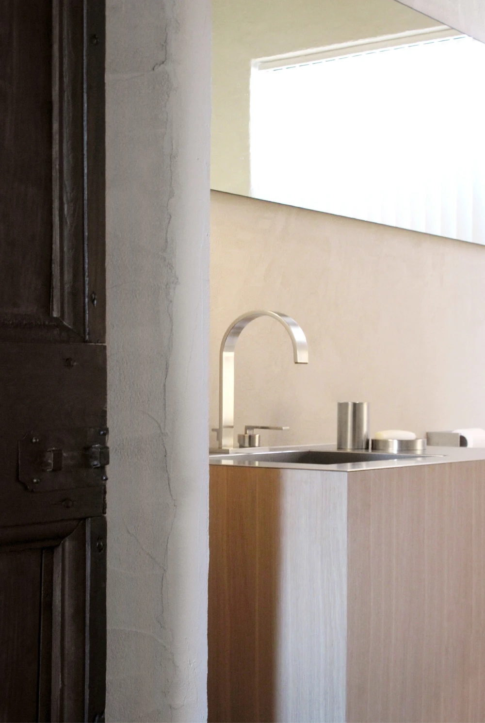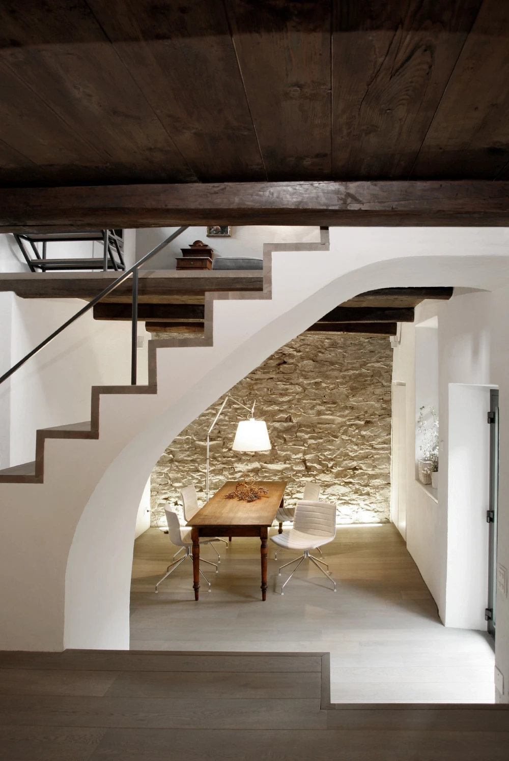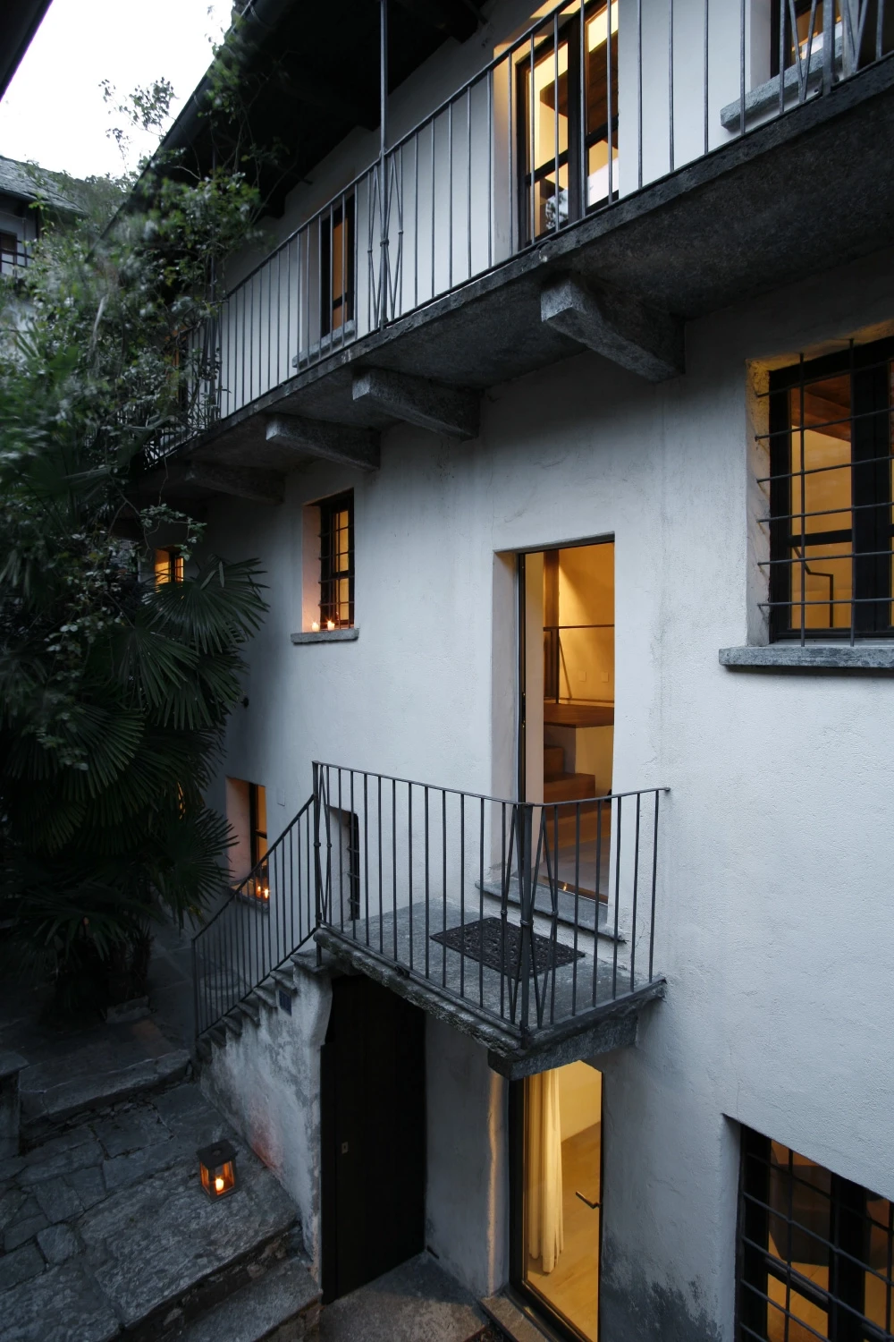 Ein 250-jähriges Steinhaus im alten Dorfkern von Brione wurde 2007 neu strukturiert. Die Innenarchitektur respektiert die massive Bausubstanz und bringt sie mit minimalistischen Einbauten in Balance. Akazienholzdecken, rohe Steinmauern und ruhige Farben prägen das Bild. So entsteht ein Interior, das den rustikalen Charme bewahrt – und gleichzeitig modern auftritt. Form- und Materialkonzept Badgestaltung Küchengestaltung Möblierung