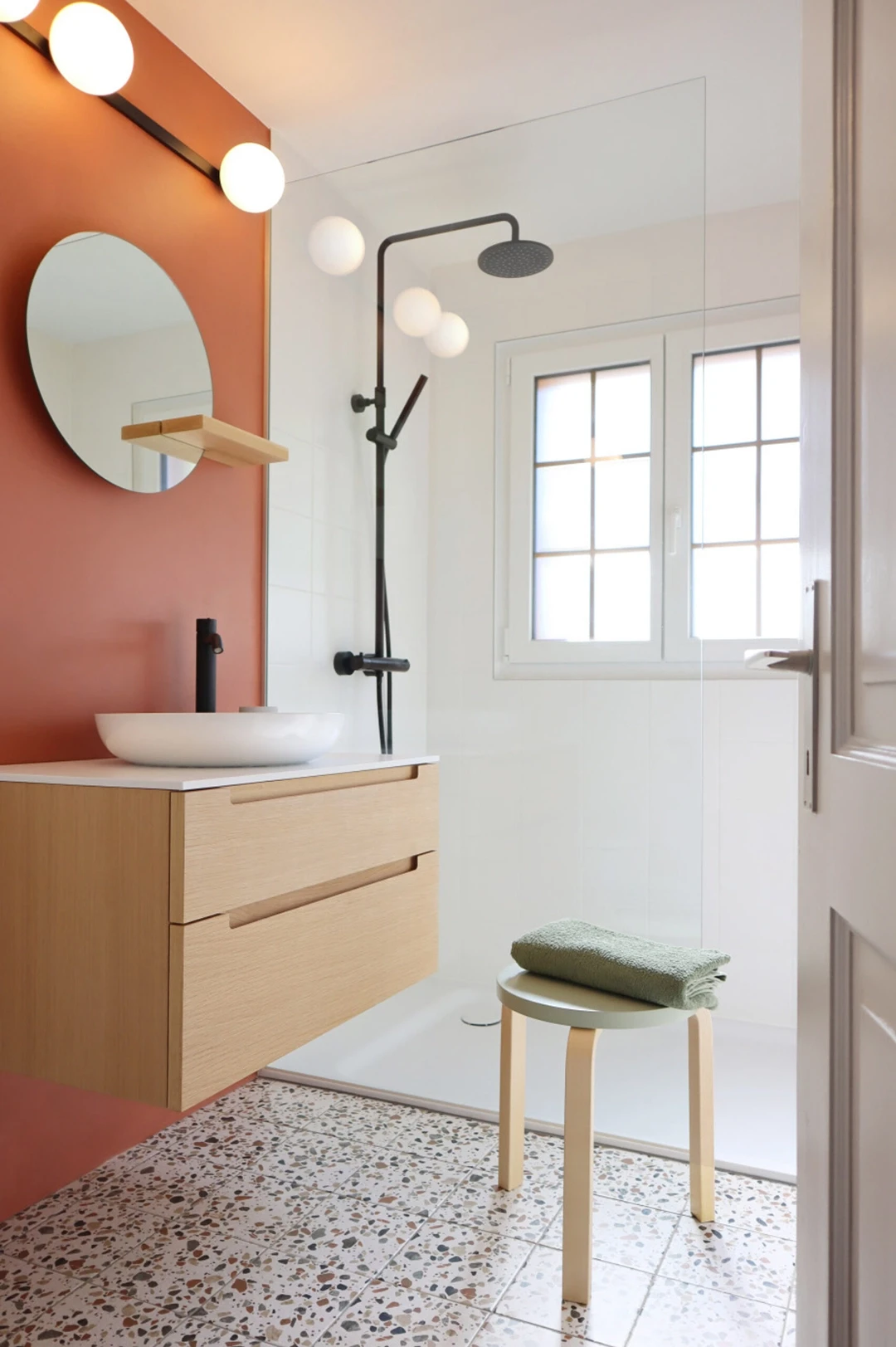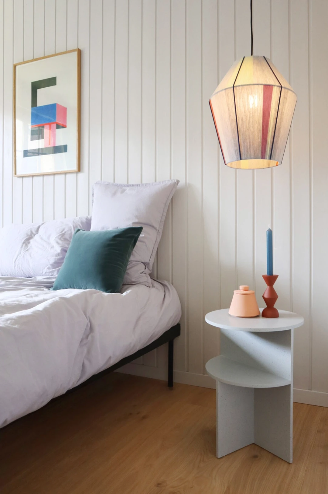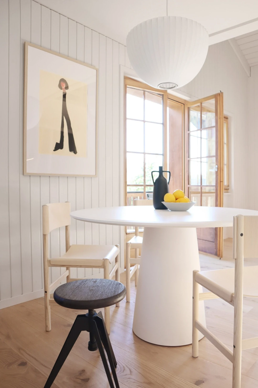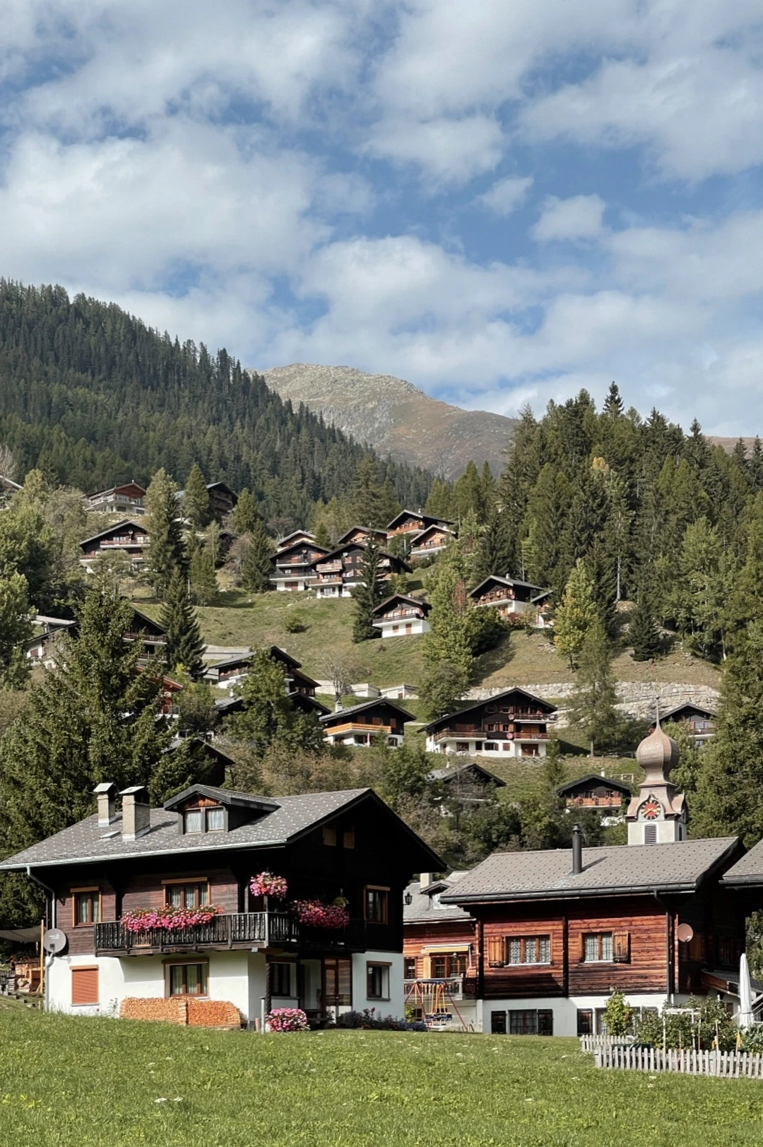 Die sanierte Wohnung im Walliser Chalet übernimmt und interpretiert die lineare Struktur der originalen Wandvertäfelung neu. Helle Lasuren verleihen der Holzoberfläche Leichtigkeit. Die Möblierung verbindet alpine Elemente mit Scandinavian Modern – reduziert, aber warm. So entsteht ein Ferienort mit hoher räumlicher Qualität und respektvoller Weiterentwicklung der Bausubstanz von 1970. Farbe und Material Küche Bad Möblierung