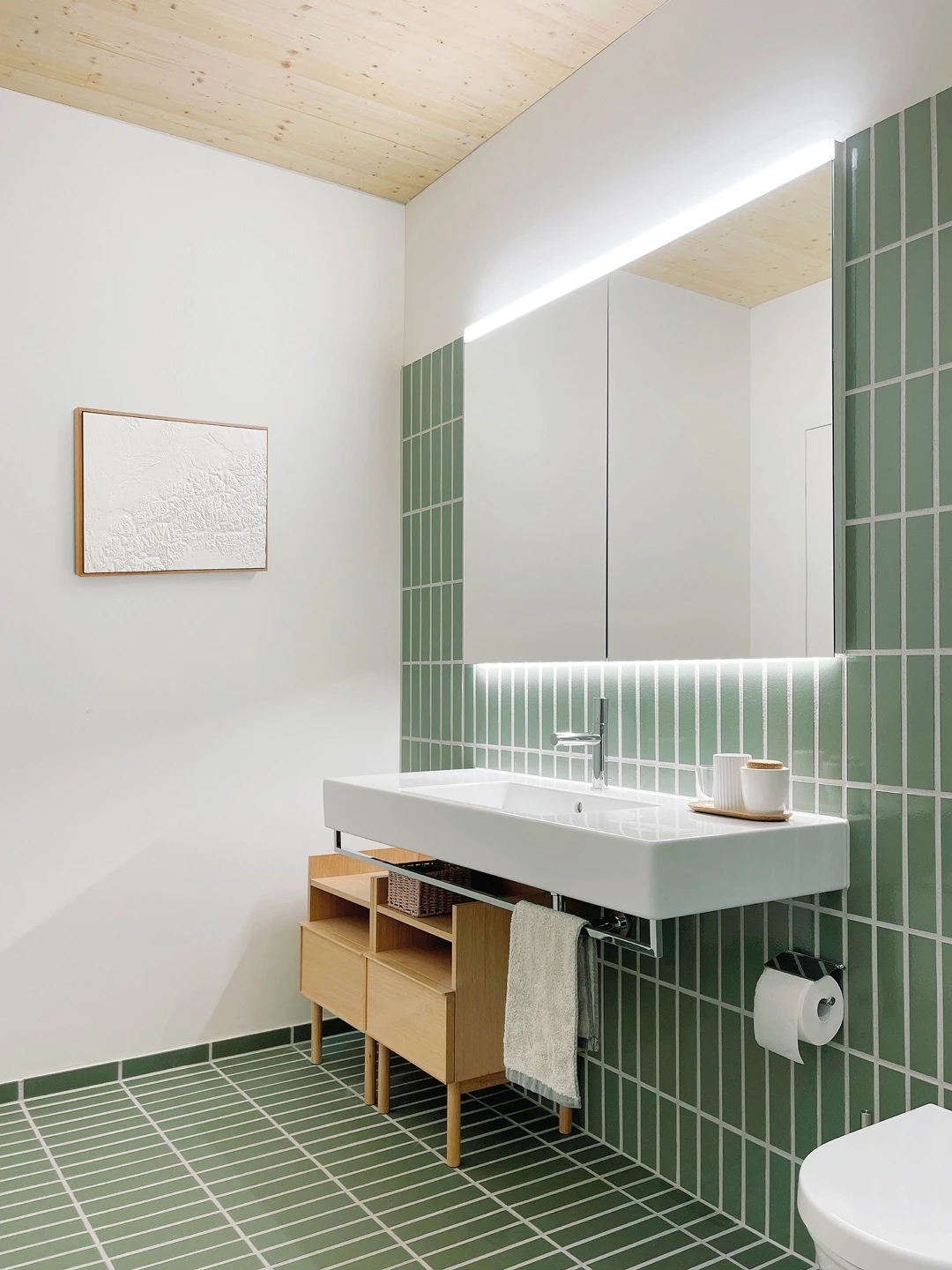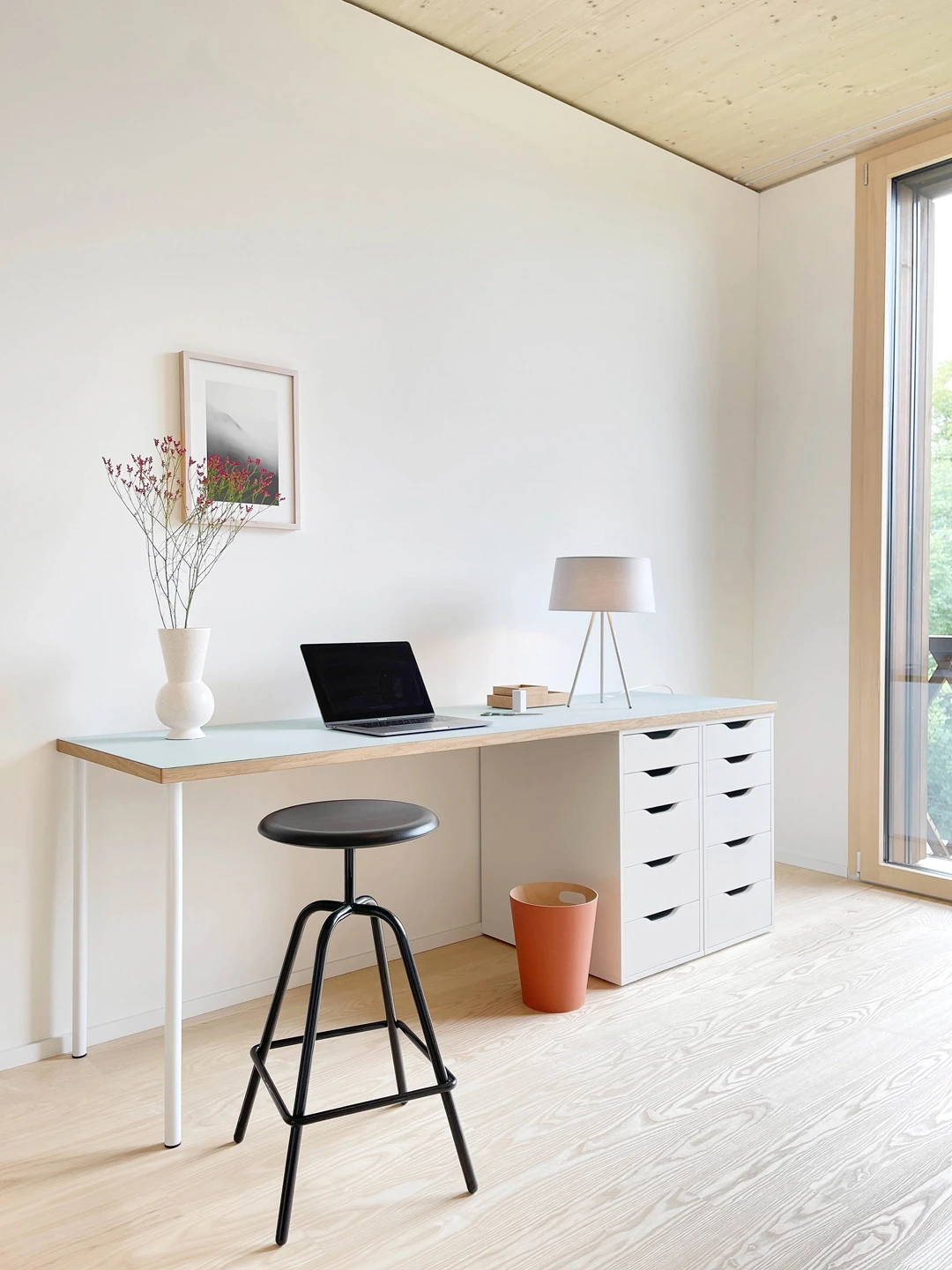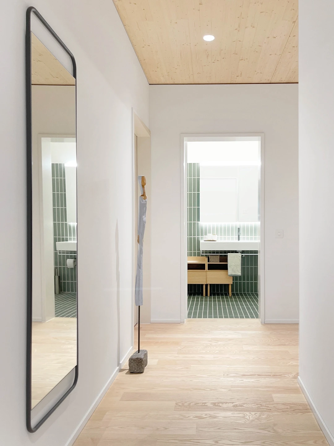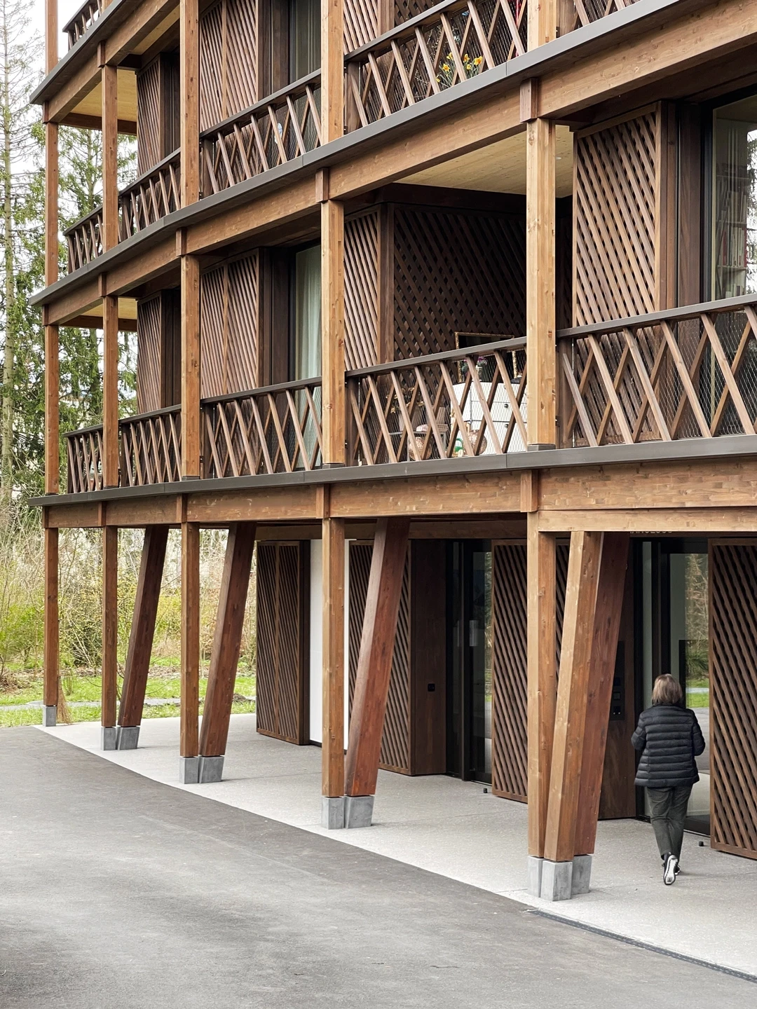 Im Garten des historischen Luzerner Klosters wurde 2023 ein Mehrfamilienhaus mit 30 Wohneinheiten realisiert. Die Holzfassade nimmt Bezug auf den Ort – wie eine übergrosse Gartenlaube. Diese architektonische Haltung wurde in der Attika-Wohnung im Innern fortgeführt. Eine Kombination aus verschiedenen Hölzern, natürlichen Farbtönen und textilen Strukturen schafft einen stimmigen, zurückhaltenden Innenausbau mit ruhiger, wohnlicher Präsenz. Stellplan Moodboards Möblierung Staging